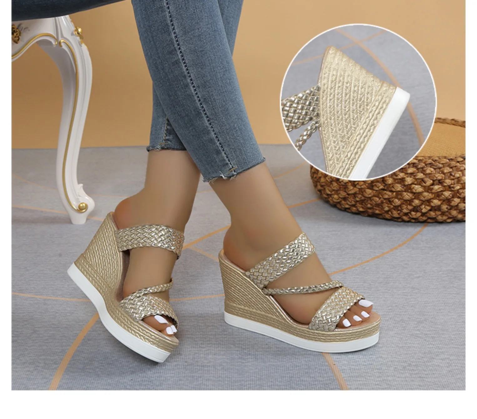 Step into comfort and summer style with these elegant heeled sandals, designed for women who love fashion and functionality. Featuring a sleek slip-on design with an open back strap and wedge heel, these sandals provide the perfect blend of casual ease and elevated flair.